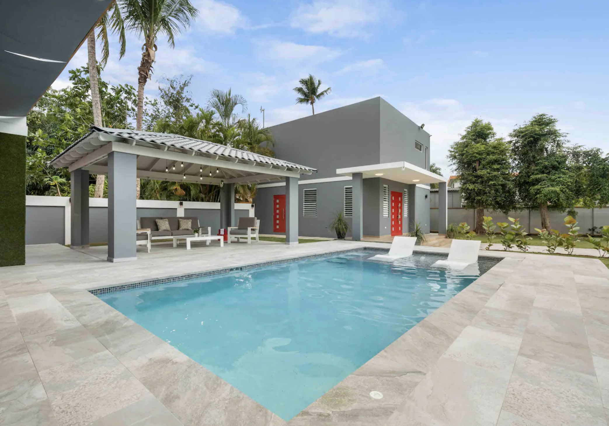 Casa Eden is a stylish and modern house located a few minutes from the beach. This house has a large pool, gazebo, two bedrooms, two bathrooms, a comfortable kitchen and a BBQ area. Perfect for groups looking for a getaway.